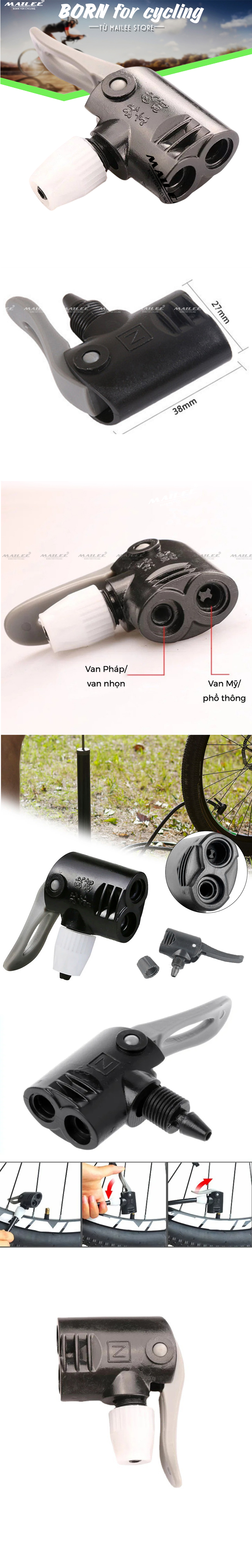 Giới thiệu Đầu Bơm Hơi Xe Máy/ Xe Đạp phổ thông/ van nhọn (Schrader/Presta) Đầu Đôi Đa Năng Phụ Kiện (đường kính ống vào 7.3mm) - Mai Lee