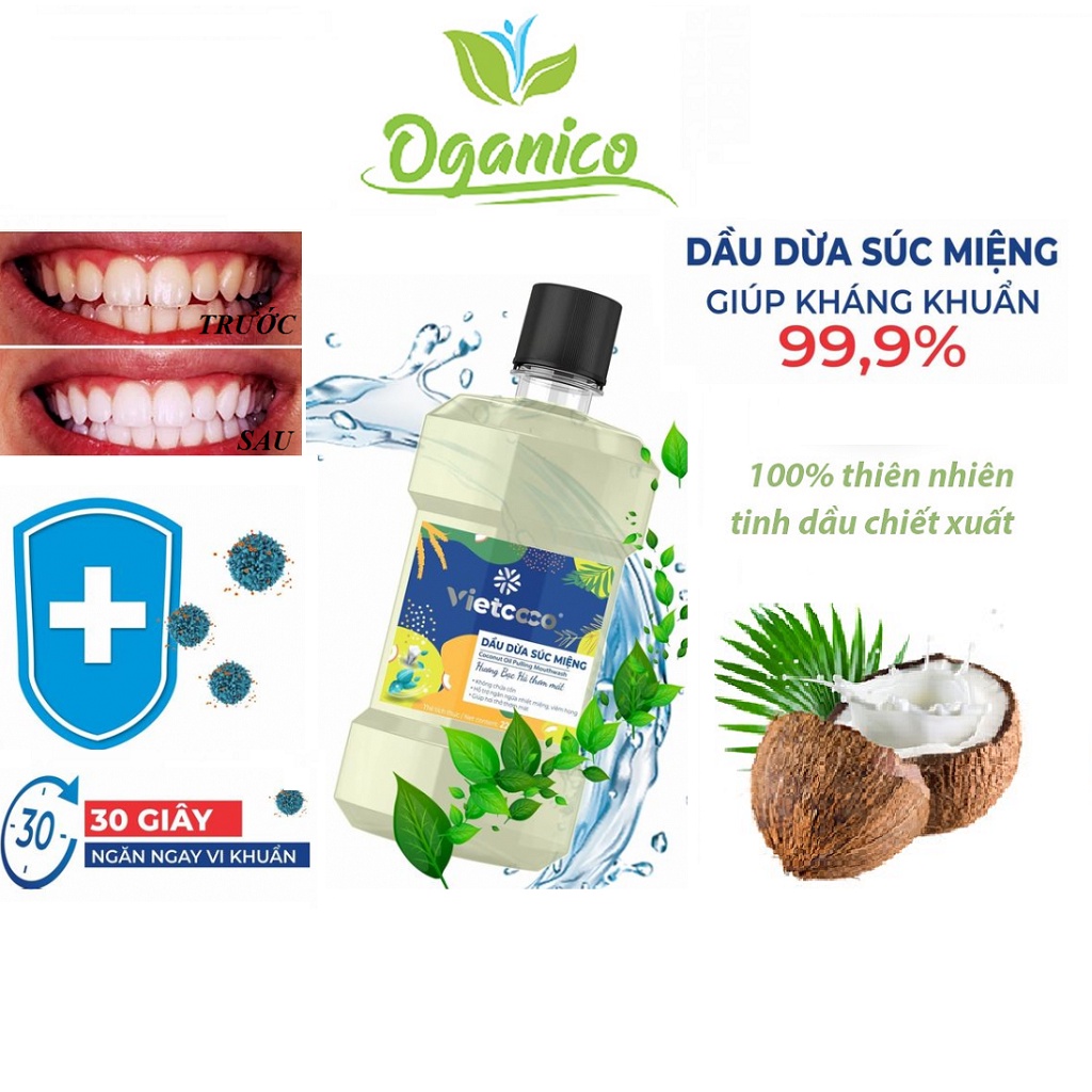 Giới thiệu Dầu dừa Vietcoco súc miệng - Nước súc miệng thảo dược Bạc Hà dầu dừa sát khuẩn, ngừa sâu răng, thơm mát 225ml OGANICO 13