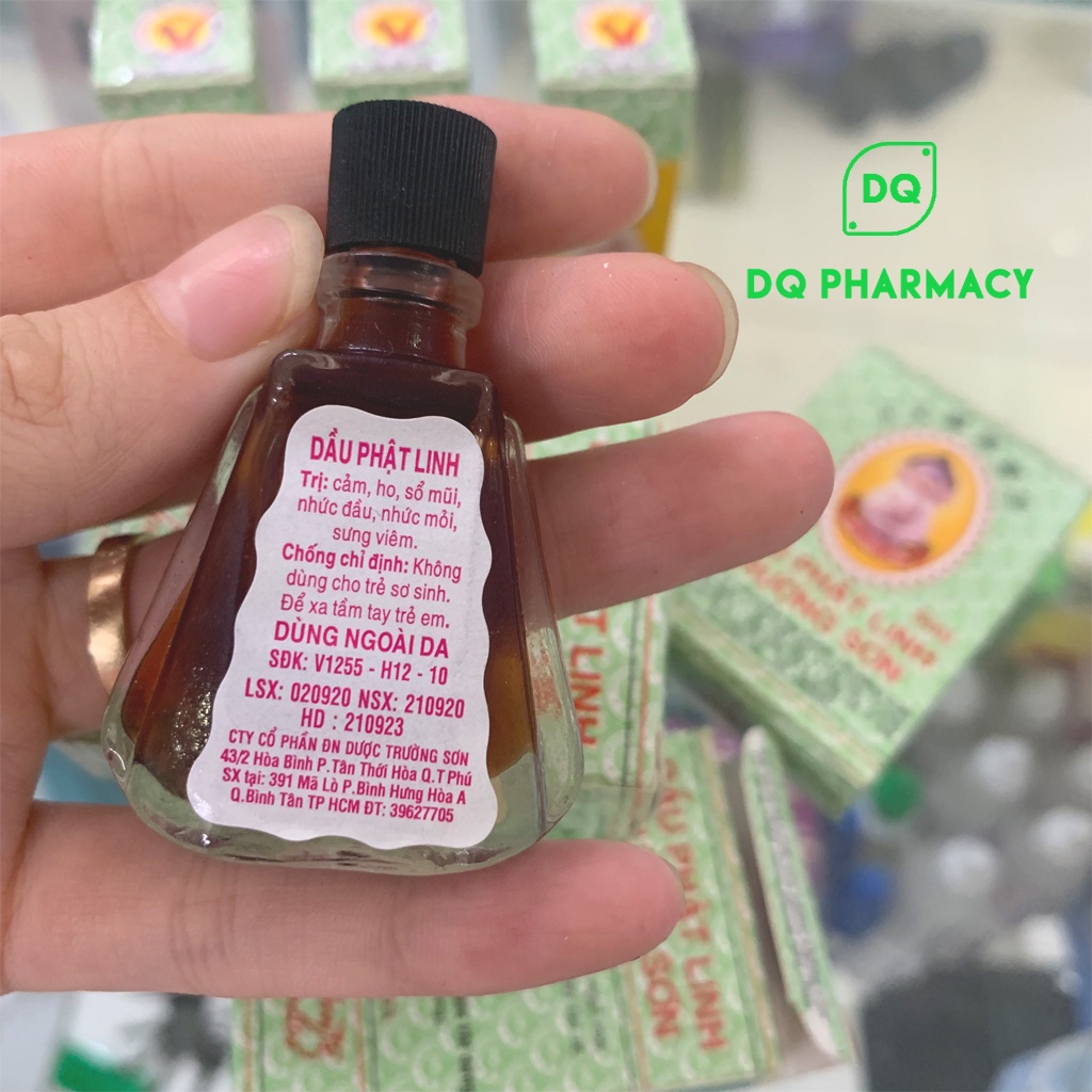 Dầu gió, dầu phật linh, dầu gió trường sơn Dầu gió phật linh là sản phẩm quen thuộc với mọi người dân Việt, nhỏ mà có võ, không thể thiếu trong tủ thuốc gia đình, đặc biệt trong các gia đình có người già, người cao tuổi Quy cách đóng gói: 12 chai/hộp 5ml; 10 chai/hộp 1.5ml Công dụng dầu phật linh Dùng ngoài da. Khi có các bệnh: cảm, ho, sổ mũi, nhức đầu, say nắng, trúng gió, say tàu xe, buồn nôn, đau bụng, sưng viêm, nhức mỏi, muỗi chích, kiến cắn, tê thấp tay chân. Có tác dụng làm tan máu tụ, giảm đau trong, bong gân và phong tê thấp. Thành phần dầu phật linh Hoạt chất: Tinh Dầu bạc hà 55ml, Menthol 20g, Tinh dầu đinh hương 3ml, Long não 2g, Khuynh diệp 2ml Tá dược vừa đủ 100ml Hướng dẫn sử dụng dầu phật linh Liều dùng: Thoa dầu và bóp nhẹ lên chỗ đau. Có thể sử dụng nhiều lần trong ngày. Cách dùng: Rửa sạch và lau khô vùng da bị đau trước khi bôi dầu. Lưu ý đối với dầu phật linh: Không bôi vào vết thương hở, không bôi vào vùng vú khi cho con bú, không sử dụng cho trẻ sơ sinh. Sản phẩm không phải là thuốc và không thay thế thuốc chữa bệnh Chai 1.5ml Nhà sản xuất và phân phối: Công ty cổ phần Đông Nam dược Trường Sơn #daugio #dauphatlinh #daugiophatlinh #daugiotruongson #camcum #daunong #daubung #daudau