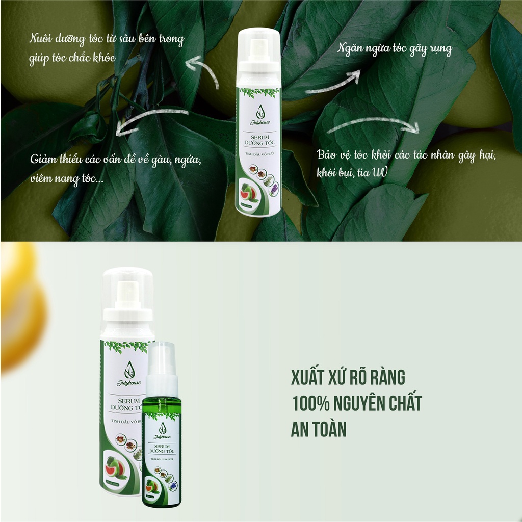 Giới thiệu Dầu gội Bưởi JULYHOUSE 300ml và Serum dưỡng tóc tinh dầu Bưởi 38ml ngăn ngừa gãy rụng, dưỡng tóc suôn dài óng mượt Dầu gội Bưởi Julyhouse 300ml với công thức dịu nhẹ, kết hợp tinh dầu Vỏ Bưởi, tinh dầu Bạc Hà và nhiều loại thảo dược giúp làm sạch tóc từ gốc đến ngọn, cân bằng độ ẩm, giảm gàu, giúp tóc mọc nhanh, mang lại mái tóc đen dày, chắc khoẻ và mượt mà.