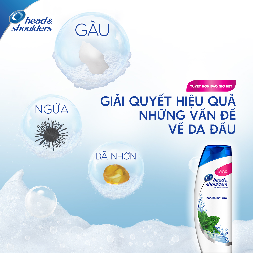 - Dầu Gội HEAD & SHOULDERS Bạc Hà Mát Rượi giúp cân bằng độ pH của da đầu, thích hợp để sử dụng hàng ngày.