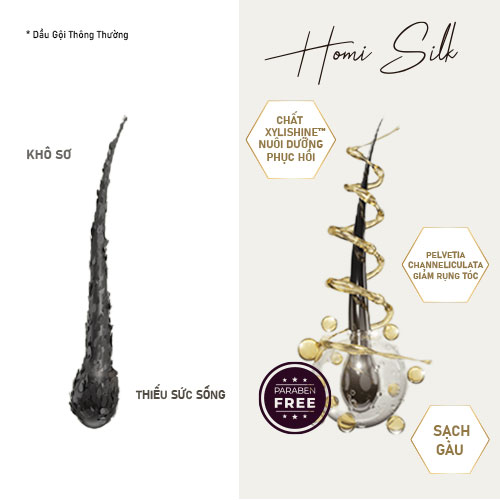Dầu gội Tảo Nâu- Pelvetia Shampoo- Homi Silk là Sản phẩm lành tính - Không chứa paraben đạt chứng nhận: cGMP - NO PARABEN - FDA. - Thành phần an toàn, không gây hại cho mái tóc và da đầu.