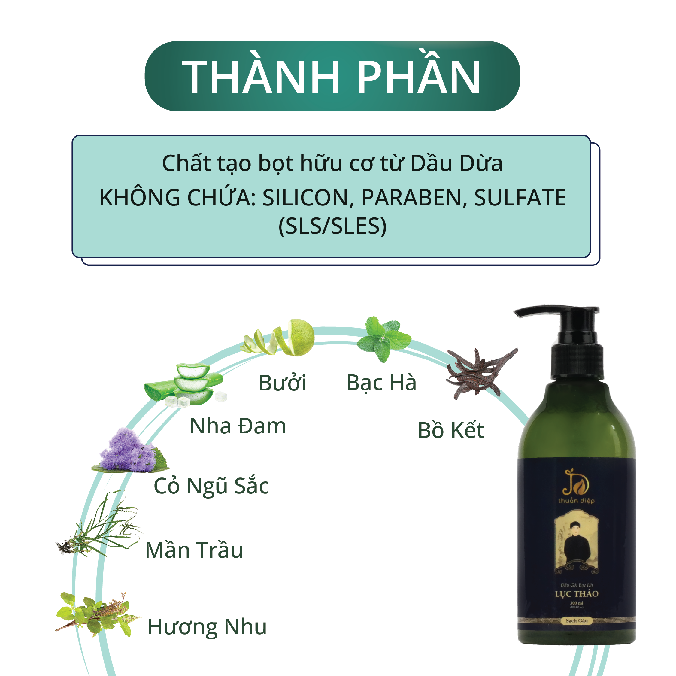Dầu gội thảo dược bạc hà Lục Thảo sạch gàu giảm rụng tóc thơm mát Thuần Diệp