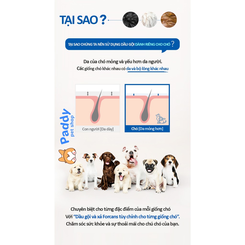 – Dầu Gội Và Xả Forcans Dành Cho Chó Lông Xoăn giúp làm sạch nhẹ nhàng, không gây rối lông, cung cấp dưỡng chất cho lông chỉ trong một lần gội và xả, nhanh khô lông, giúp lông luôn mềm mượt và chắc khỏe