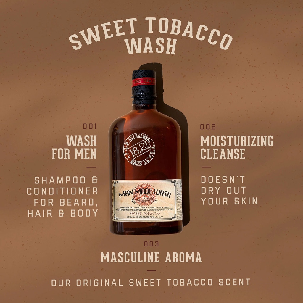 Giới thiệu Dầu gội xả tắm nam [3in1] 18.21 Man Made Wash Sweet Tobacco , Spiced Vanilla , Absolute Mahogany , Noble Oud 532ml