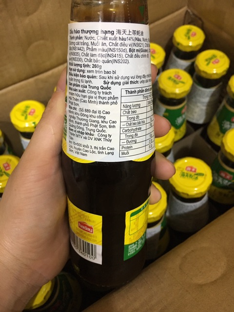 * Dầu hào – thứ gia vị nổi tiếng tạo nên hương, sắc, vị cho vô số món ngon trong nền ẩm thực Trung Hoa (đặc biệt là các món Quảng Đông) đến nay gia vị này đã lan rất nhanh dần dần trở thành một phần quen thuộc trong các món ăn của người Việt Nam, Thái Lan, Philipin và nhiều nước khác. Công dụng đầu tiên của dầu hào chính là dùng để tẩm ướp các món thịt như thịt bò, thịt heo, thịt gà,… Dầu hào sẽ giúp món ăn có hương thơm đặc sắc, vị đậm đà cùng màu sắc vô cùng bắt mắt. Tuy nhiên, khi sử dụng dầu hào để nêm nếm, bạn nhớ gia giảm các gia vị khác để tránh món ăn bị mặn, vì dầu hào có vị khá đậm rồi đấy. Không thể không nhắc đến dầu hào khi sử dụng phương pháp xào để chế biến thực phẩm, đặc biệt là xào rau. Khi món ăn bắt đầu chín tới, bạn nêm thêm chút dầu hào vào và đảo đều. Món ăn sẽ có hương thơm hấp dẫn cùng vị ngon đậm đà nhưng vẫn giữ được vị ngọt thanh của rau củ. Không những thế, sử dụng dầu hào khi xào các loại thịt cũng có tác dụng làm mềm thịt hơn khi thưởng thức. - Số giấy phép SX : SC 0976822433 014 - Tiêu chuẩn Y tế: GB/T 21999 - Trọng lượng: 260gram - NSX: In trực tiếp trên bao bì Sp - HSD: 24 tháng kể từ NSX