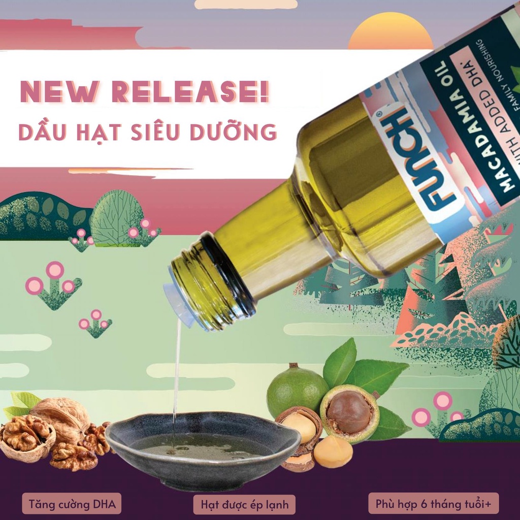 Dầu Hạt Macca FUNCH 100% nguyên liệu từ Úc bổ sung DHA từ thực vật giúp tăng cường chất dinh dưỡng và hương vị từ hạt Mác Ca dành cho bữa ăn của gia đình bạn.