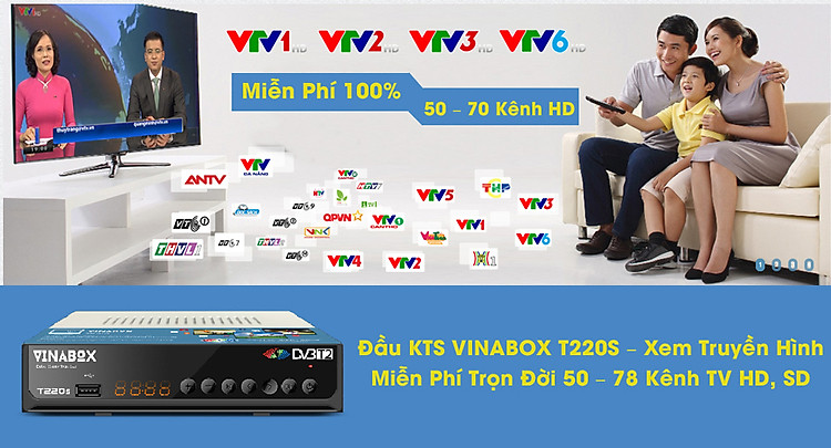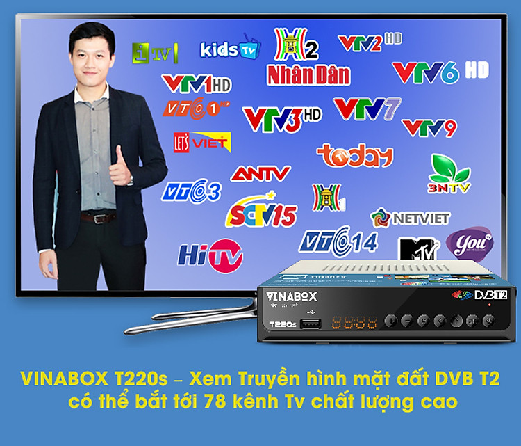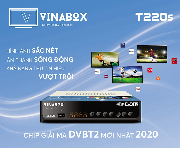 VINABOX T220s là chiếc đầu thu kỹ thuật số truyền hình mặt đất DVB T2, có đầy đủ hợp Quy của bộ Thông Tin Truyền Thông Cấp Phép. VINABOX T220s sử dụng chip giải mã thế hệ mới 2020 giúp hình ảnh đẹp, sắc nét, xem tới hơn 70 kênh truyền hình SD, HD trong nước và miễn phí trọn đời.