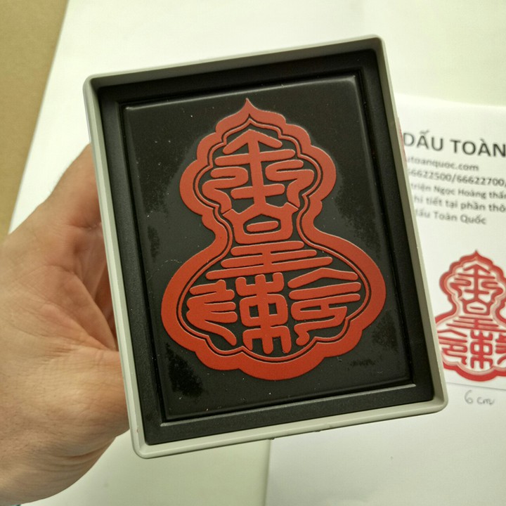 (1).THÔNG TIN SẢN PHẨM –– Sản phẩm: Dấu Triện Ngọc Hoàng thấm mực –– Mã sản phẩm: FLASH-NGOCHOANG –– Mẫu mã: Mới 100%, Nguyên hộp. –– Đơn vị tính: Con –– Kích Thước: 6x7,5(cm) –– Màu mực: Mực đỏ –– Đặc điểm: Dấu liền mực thẩm thấu rất tiện lợi, hết mực đổ mực vào tái sử dụng được. –– Chất lượng: Thiết kế gọn, nhẹ nhàng, Rõ từng nét, chuyển động êm ái, tiện lợi, an toàn khi sử dụng. Sản phẩm đúng hình ảnh và Kích thước như mô tả sản phẩm. –– Xuất xứ: Khắc dấu Toàn Quốc (2).CHỈ DẪN SẢN PHẨM –– Đơn vị Khác dấu toàn Quốc Khắc dấu triện Ngọc Hoàng đẹp và chuẩn nhất hiện nay với nhiều kích thước phù hợp. Dấu triện được thiết kế tinh xảo, sau khi quý khách sử dụng nhiều lần hết mực sẽ bổ sung mực trực tiếp vào khay mực để dùng tiếp, tiện lợi khi phải di chuyển. –– Về cơ bản Dấu Triện Ngọc Hoàng không quy định về kích thước, Đơn vị chúng tôi tư vấn khách hàng dùng Dấu Ngọc Hoàng thấm mực với kích thước 6x7,5(cm) dùng đẹp cho sớ A4, A3. (3).BỘ SẢN PHẨM ĐẦY ĐỦ –– 01 x Dấu Triện Ngọc Hoàng thấm mực