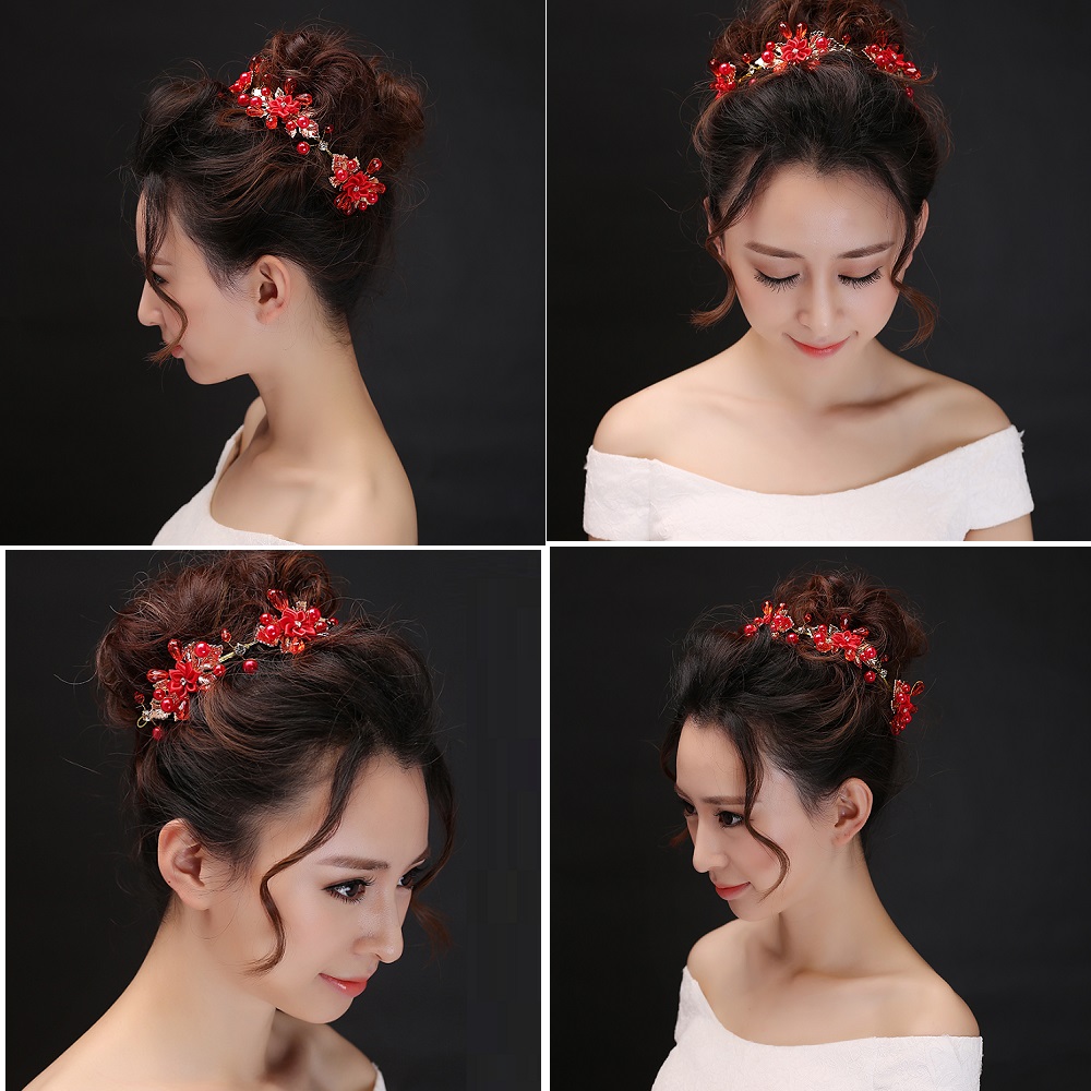 - Chất liệu: Cánh Hoa Vải, Hạt Trai Mỹ Ký, Hạt Cườm, Plastic phủ nhũ, dây kim loại mạ dạng mềm