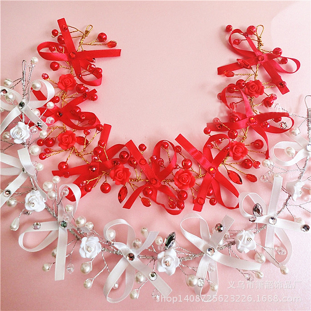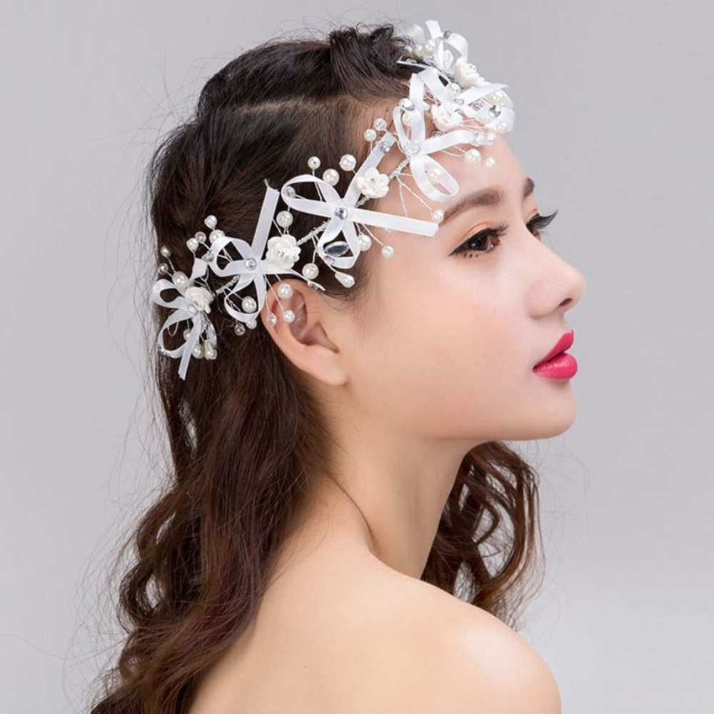 DÂY CÀI TÓC NƠ VẢI HOA SỨ ĐÍNH HẠT CƯỜM 110 SỐ 2