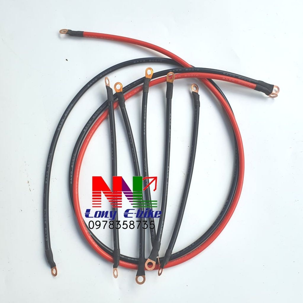 dây được làm sẵn gồm 5 dây nối bình cho 6 bình ắc quy nối tiếp , mỗi dây dài 20cm . 2 dây nguồn đỏ và đen ( đen dài 110cn , đỏ dài 90cm )