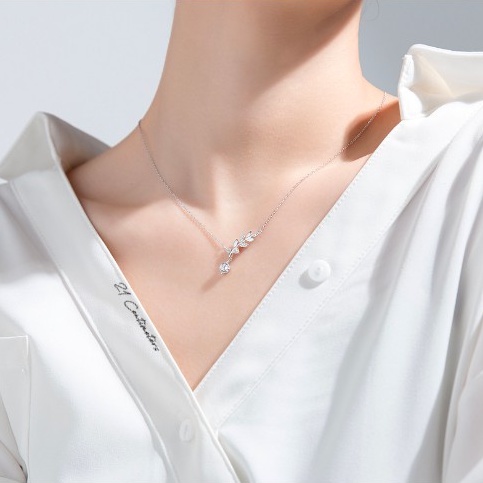 Phụ Kiện Thời Trang > Dây chuyền || Dây chuyền bạc 21 Centimeters Lá đính đá Trang sức bạc Tiệm bạc 21 Centimeters