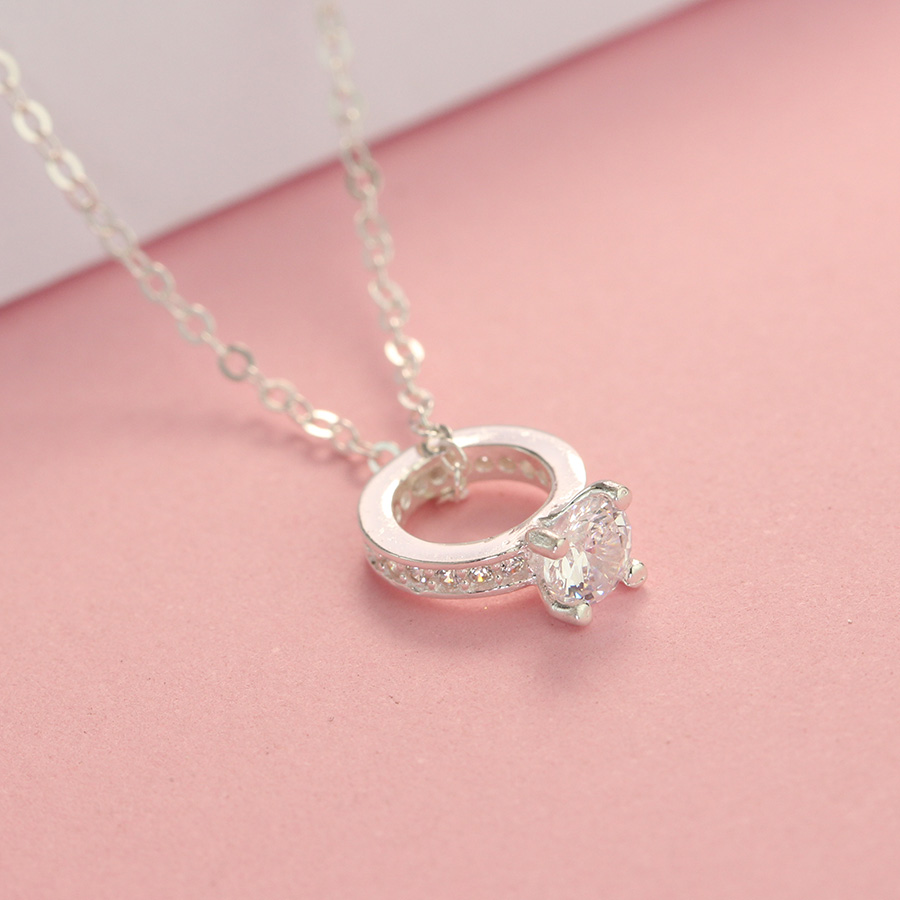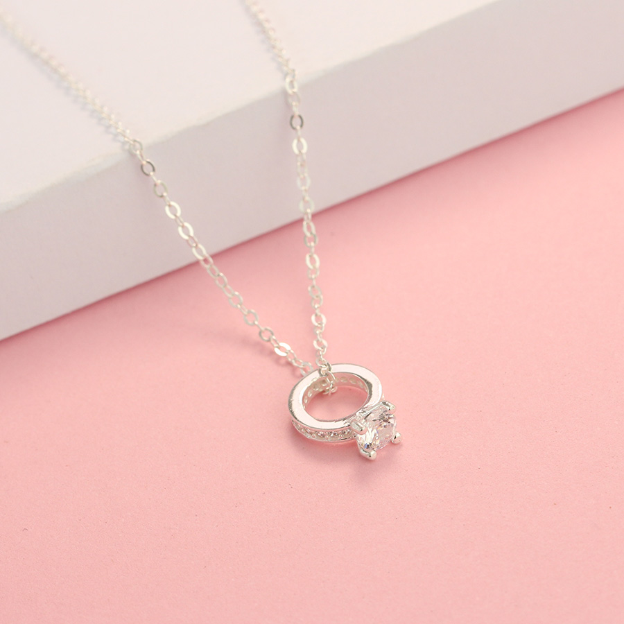 Mẫu dây chuyền bạc nữ mặt chiếc nhẫn đính đá chắc chắn sẽ làm bạn hài lòng