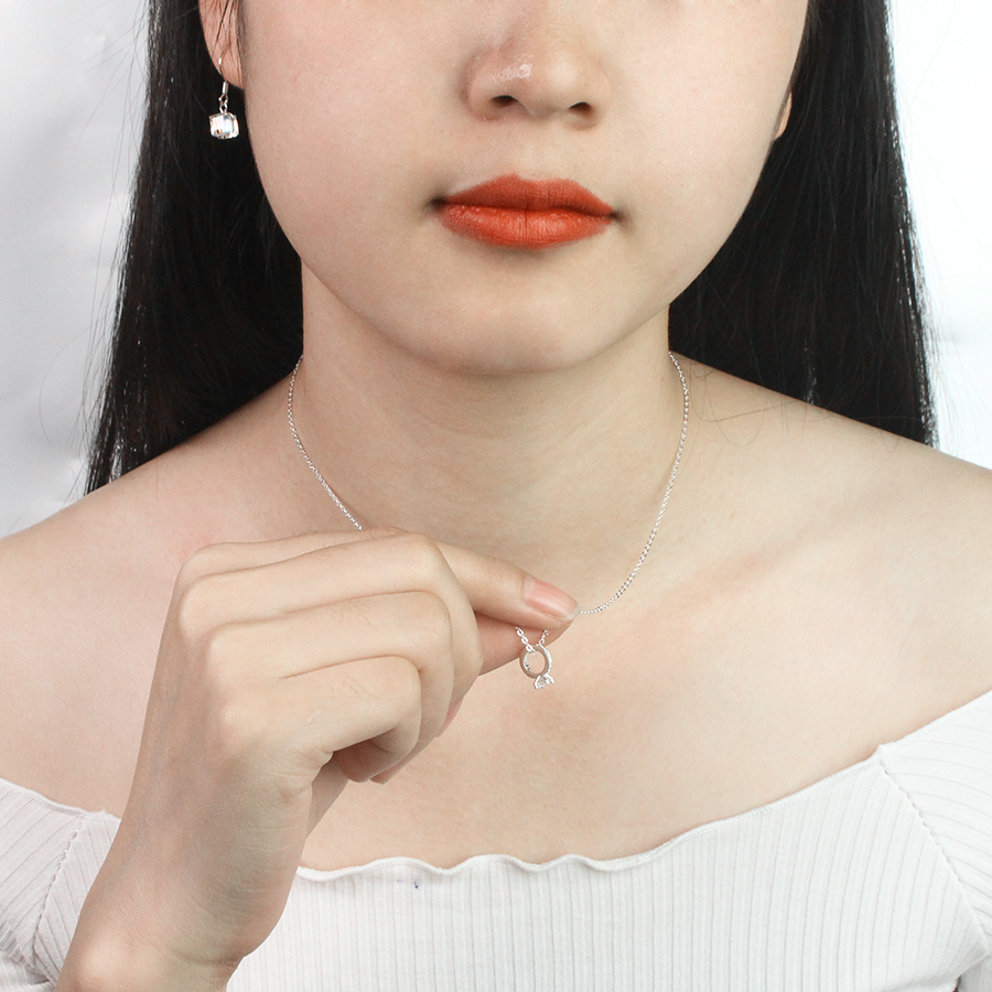 Hình ảnh chi tiết mẫu dây chuyền bạc nữ mặt hình chiếc nhẫn đính đá DCN0453