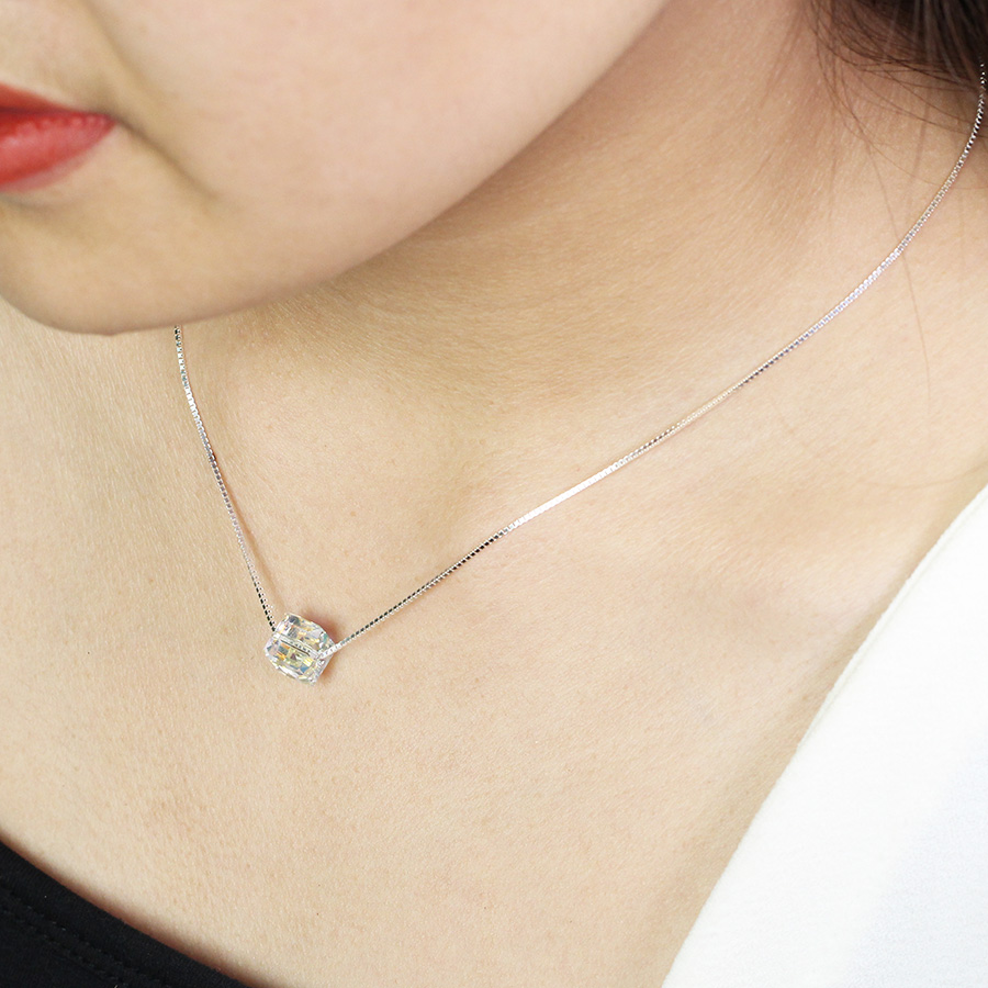 Mẫu vòng cổ bạc nữ pha lê khối lập phương được thiết kế cách điệu cực HOT