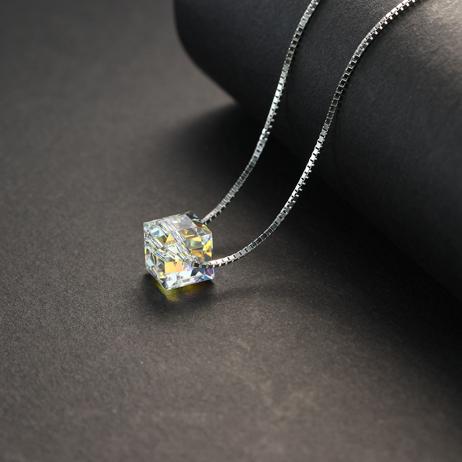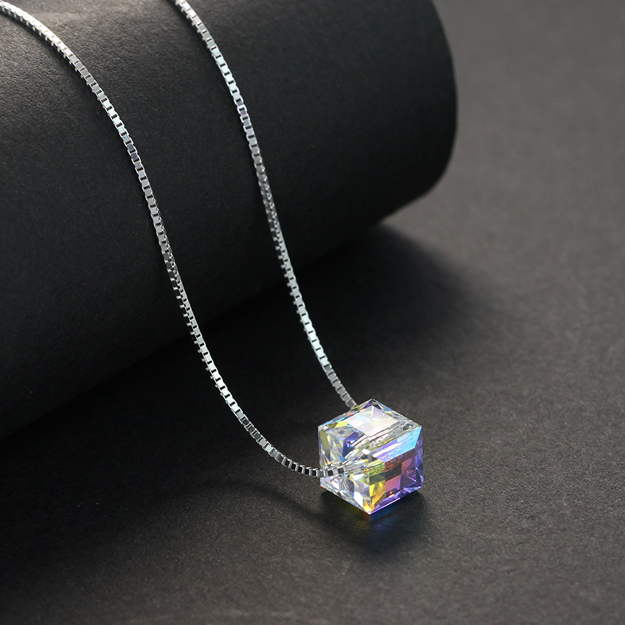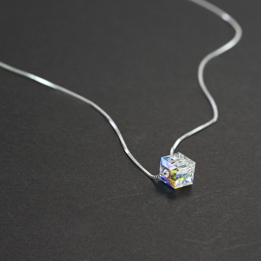 Dây chuyền bạc nữ, vòng cổ nữ bạc pha lê khối lập phương DCN0384