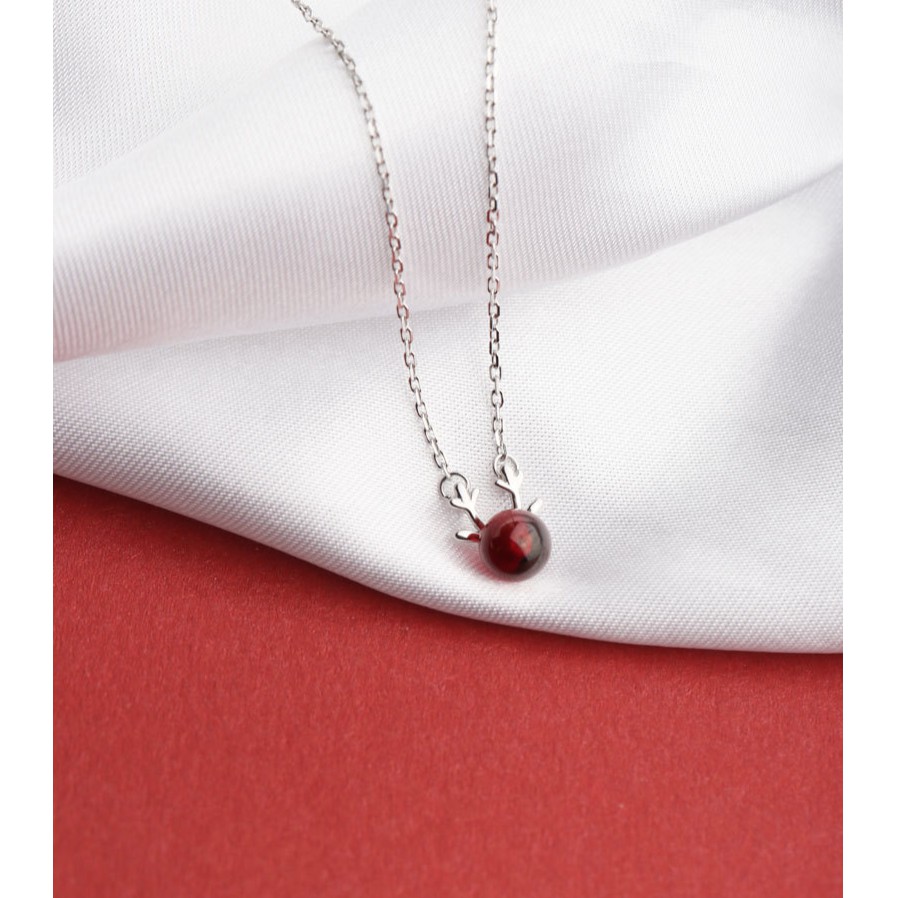 Giới thiệu Dây chuyền bạc S925 - Mẫu mặt đá đỏ tuần lộc