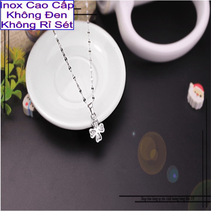 Dây chuyền cho bé mặt cỏ 4 lá hình tim phối đá Zircon kiểu dây me - An toàn cho trẻ - Cam kết 1 đổi 1 nếu hoen, gỉ sét