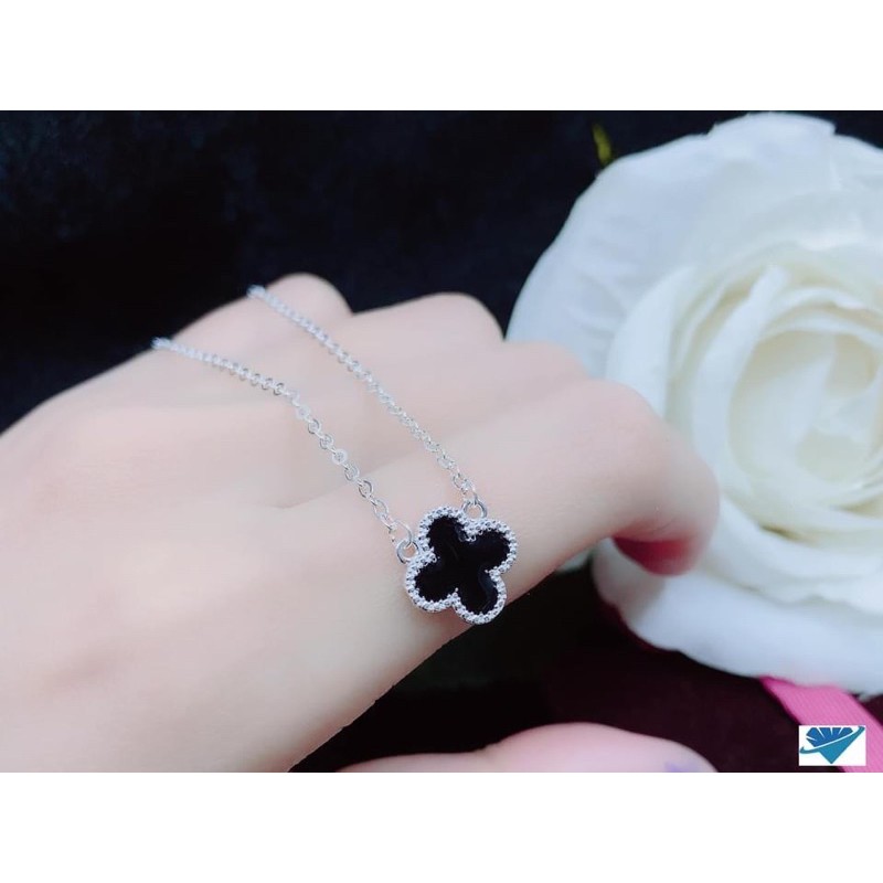 Dây chuyền cỏ 4 lá sơn đen , hàng chuẩn bạc ta (ảnh thật)