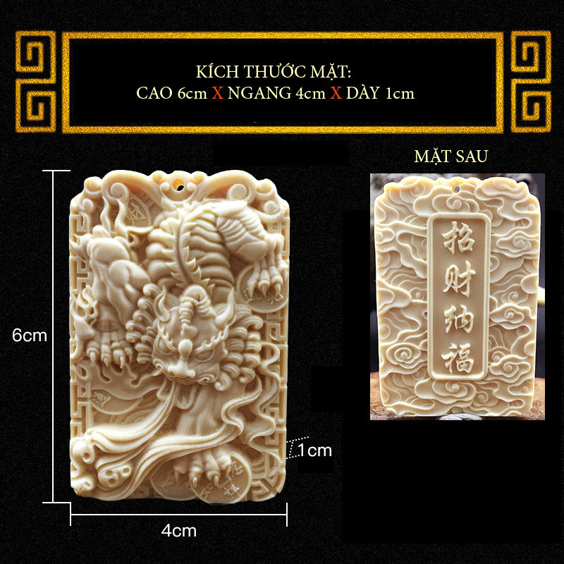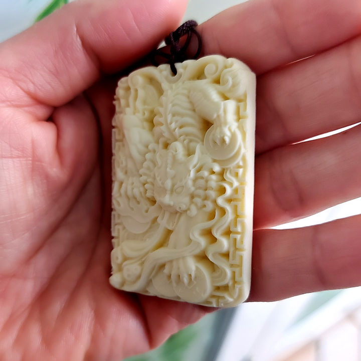 Mặt dây chuyền hình thẻ bằng ngà thực vật biểu tượng hỏa kỳ lân được làm hoàn toàn bằng Hạt Tagua (hạt cây dừa ngà –Ivory Palm