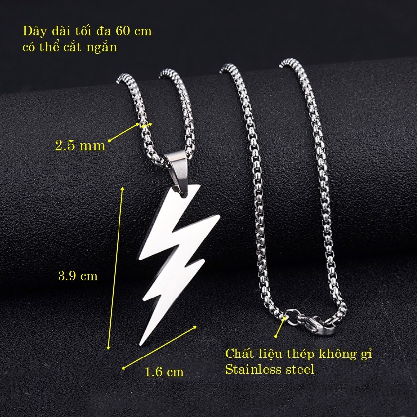 Giới thiệu Dây chuyền nam titan không gỉ thời trang mặt sấm sét không mất màu dây dài 60 cm