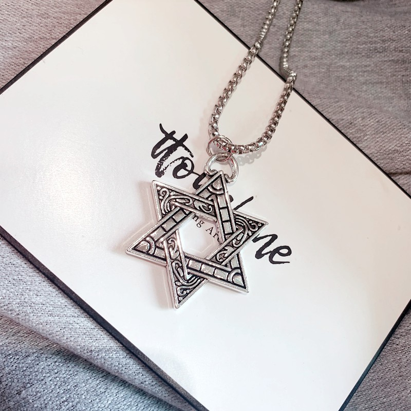 Giới thiệu Dây chuyền nam titan mặt hình ngôi sao David 6 cánh, họa tiết phong cách Retro