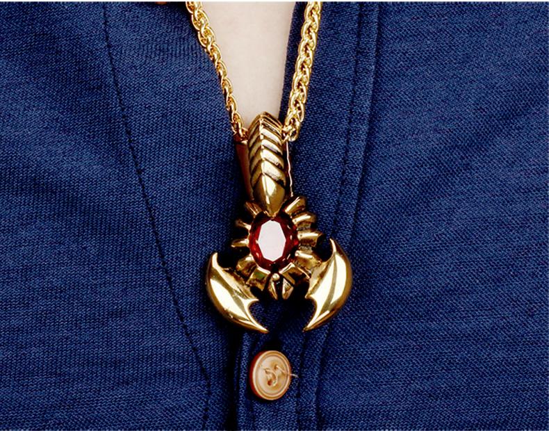 Sản phẩm bao gồm : 01 dây chuyền màu ánh vàng kim kiểu bông cau dễ dàng kết hợp cùng với các trang phục kèm 01 mặt dây hình con bọ cạp cách điệu màu vàng ánh vàng kim đính đá màu đỏ rât phù hợp cho các bạn nam phong cách mạnh mẽ