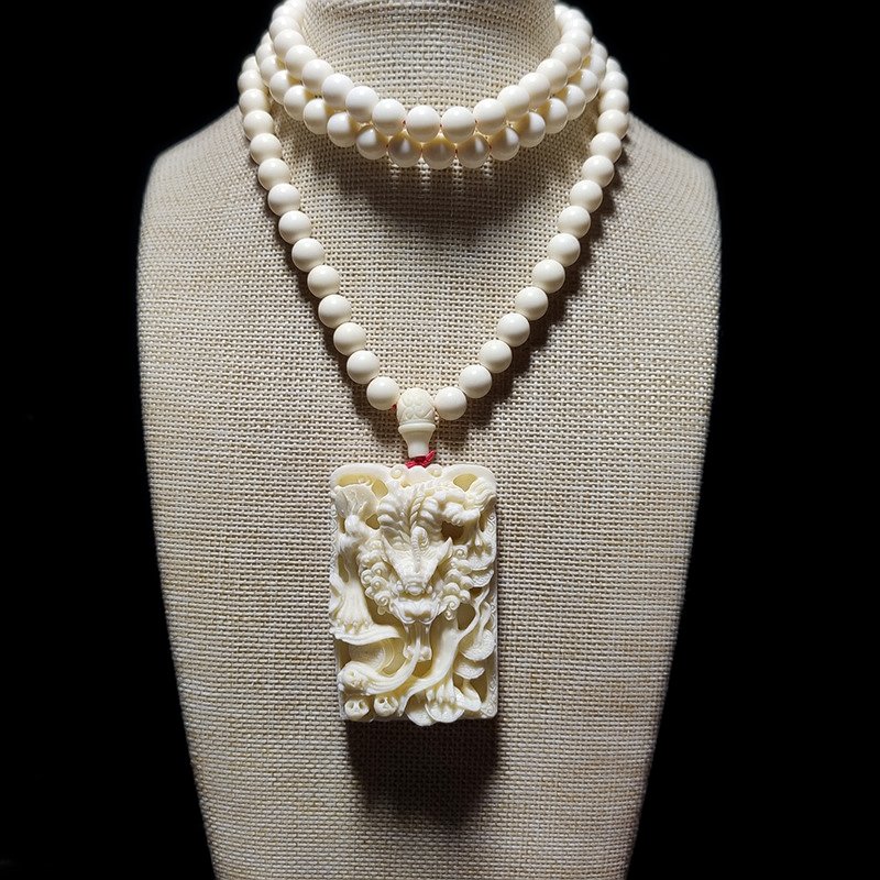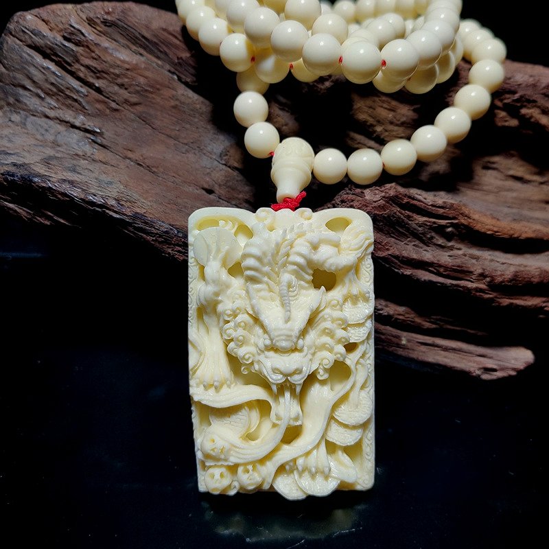 Mặt dây chuyền hình thẻ bằng ngà thực vật biểu tượng hỏa kỳ lân được làm hoàn toàn bằng Hạt Tagua (hạt cây dừa ngà –Ivory Palm)