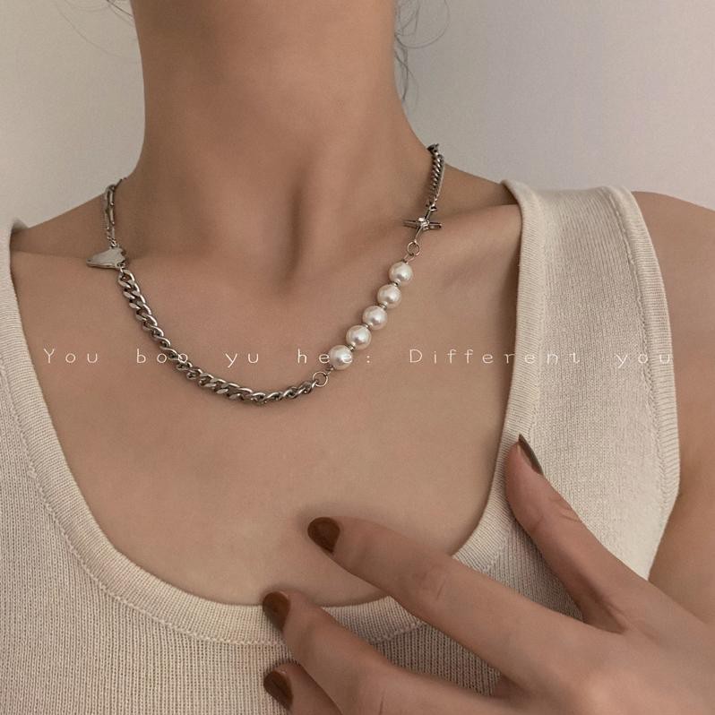 Dây chuyền ngọc trai nhân tạo trái tim ngôi sao cho nữ