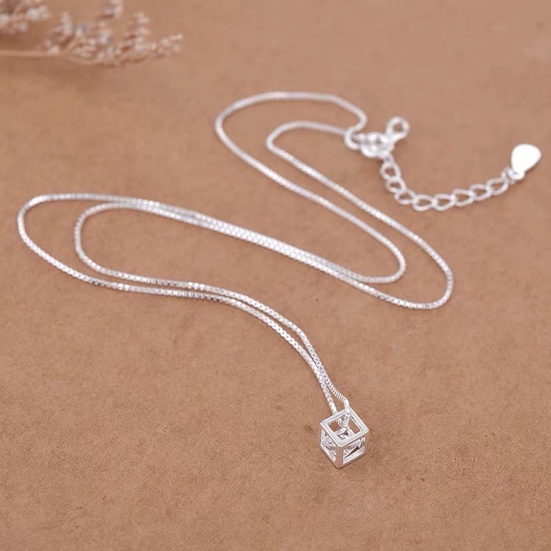 Giới thiệu Dây chuyền nữ vòng cổ bạc mặt hình khối tâm đá lấp lánh , Cam kết chuẩn bạc 0101