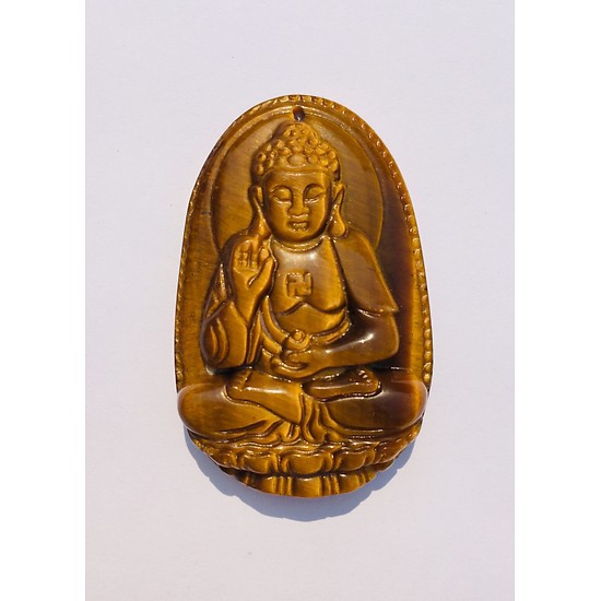 Giới thiệu Dây chuyền phật bản mệnh A Di Đà hộ mệnh tuổi Tuất - Hợi đá Mắt Hổ vàng nâu