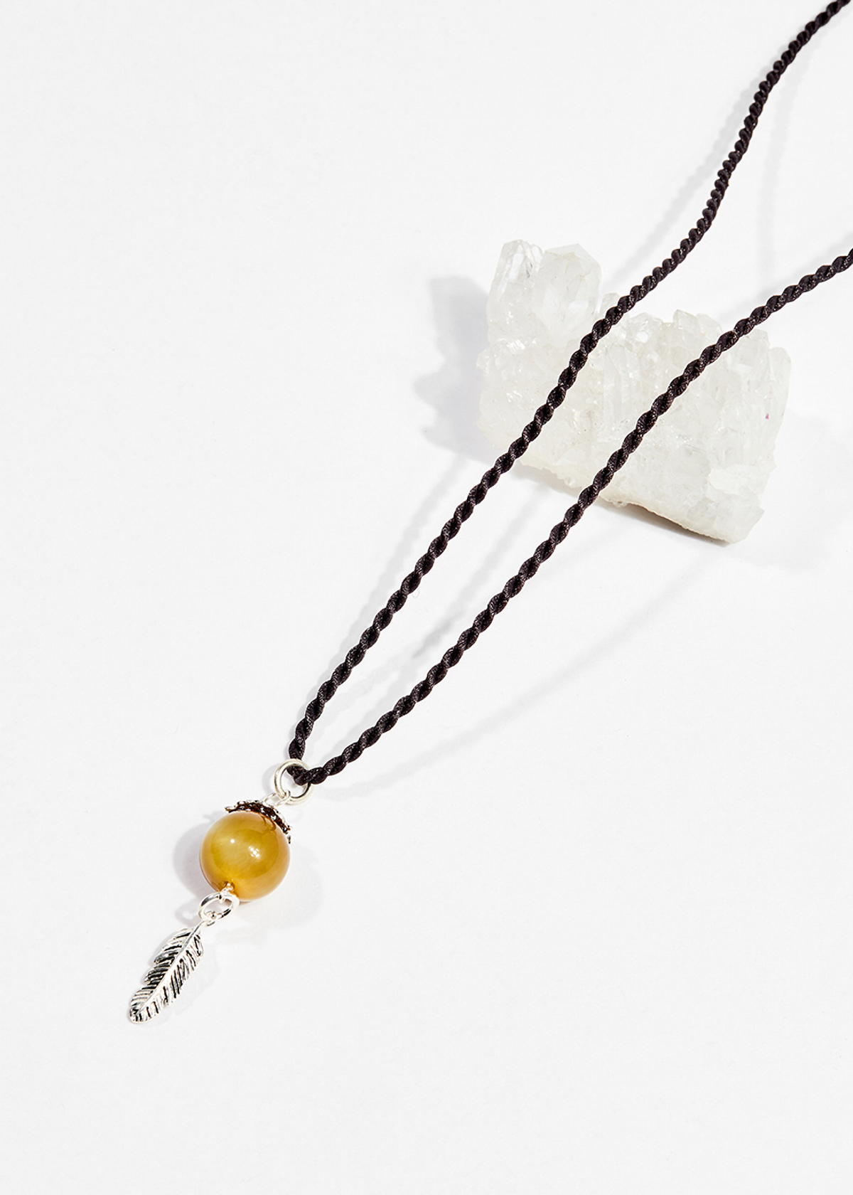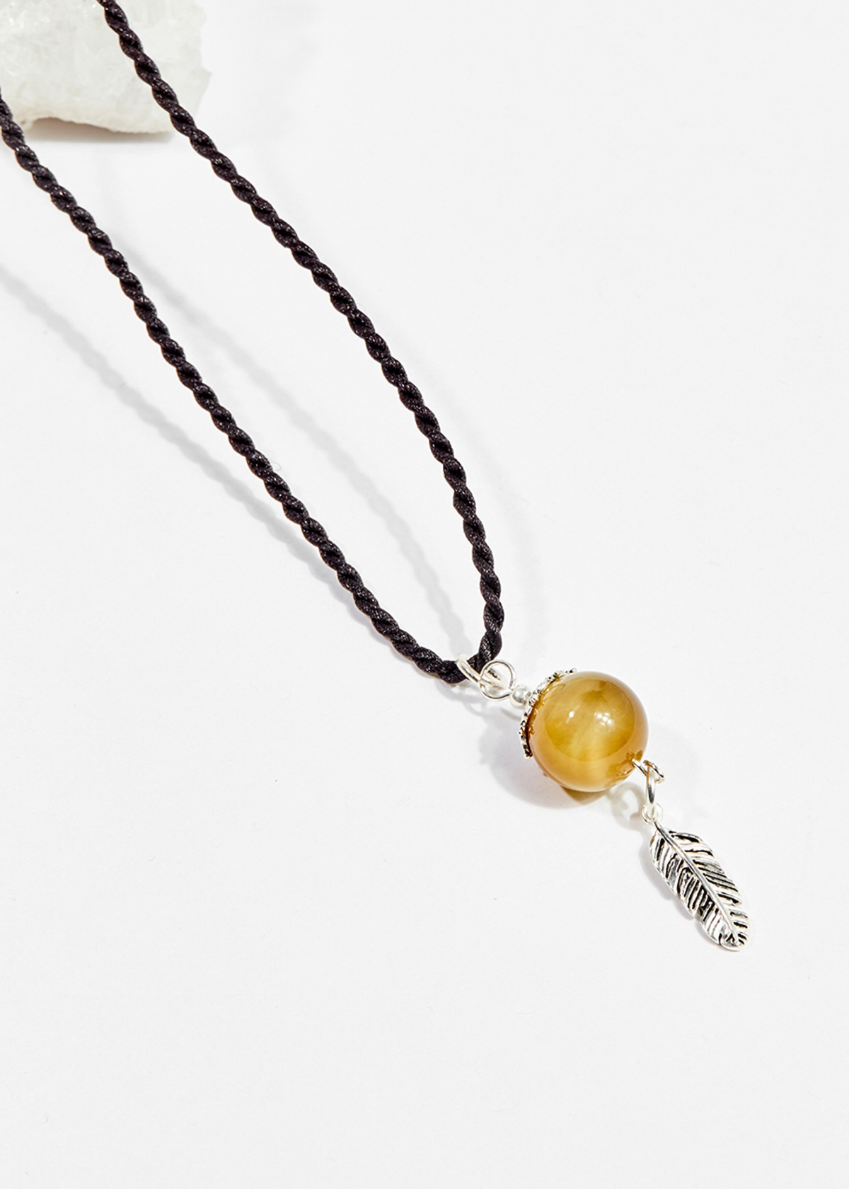 Giới thiệu Dây chuyền phong thủy đá mắt hổ vàng tâm charm lông vũ 1.5cm mệnh thổ , kim - Ngọc Quý Gemstones