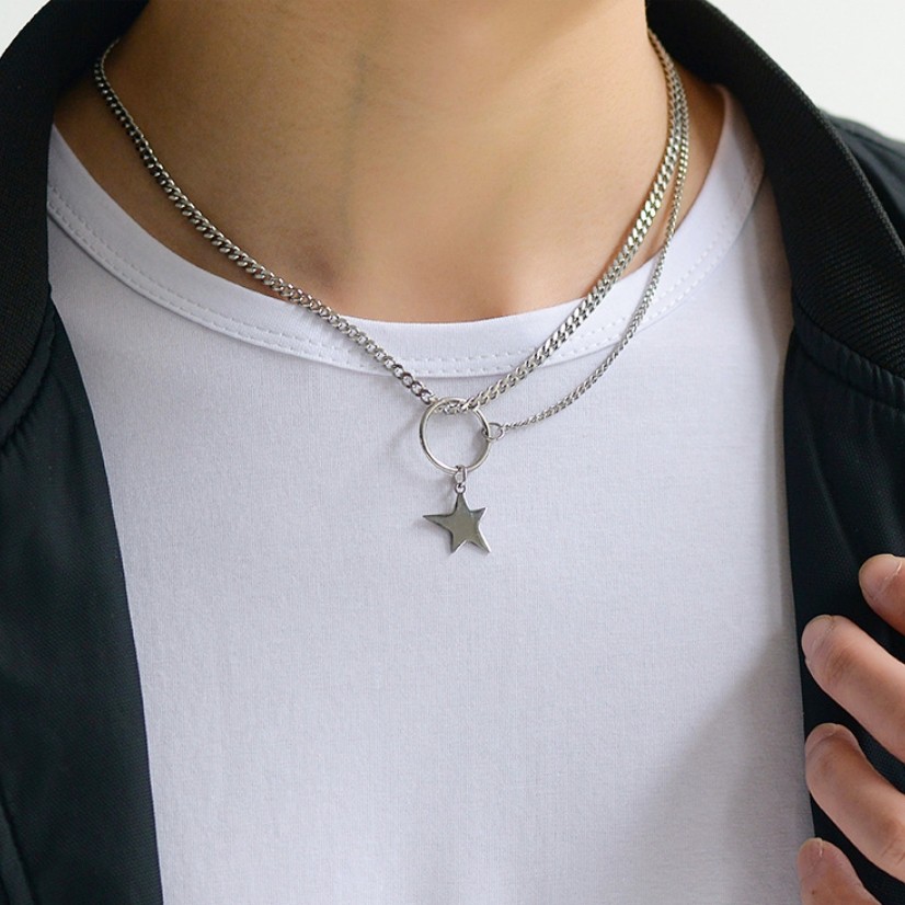 Giới thiệu Dây chuyền unisex không gỉ Stainless steel mặt nhẫn và ngôi sao không mất màu dùng cho Nam Nữ