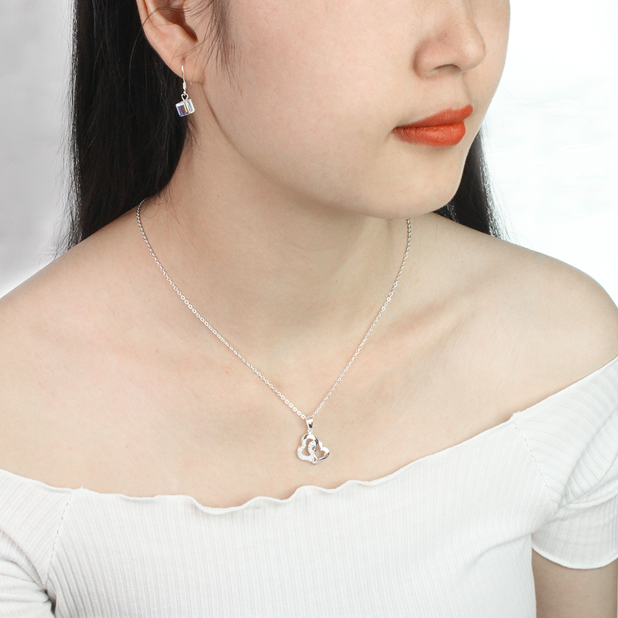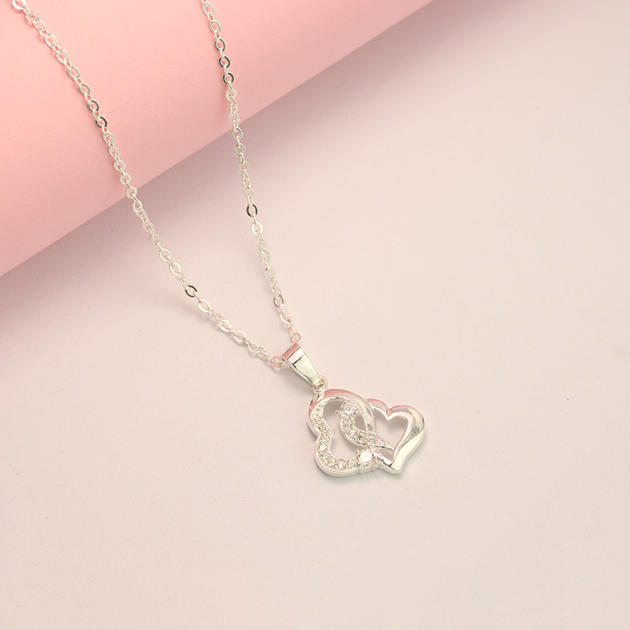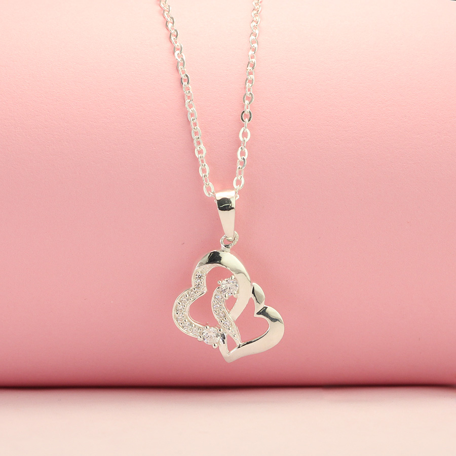Hình ảnh chi tiết mẫu dây chuyền nữ bạc cao cấp mặt trái tim đôi đính đá DCN0445