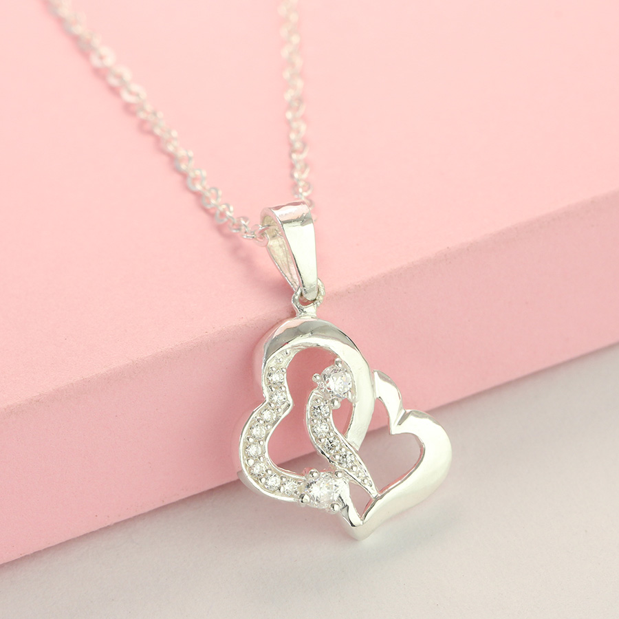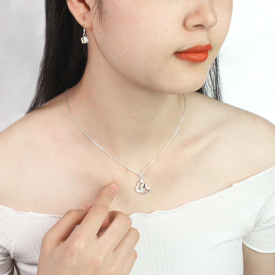 Mẫu dây chuyền, vòng cổ bạc nữ cao cấp đính đá hình trái tim đôi được thiết kế cách điệu cực HOT