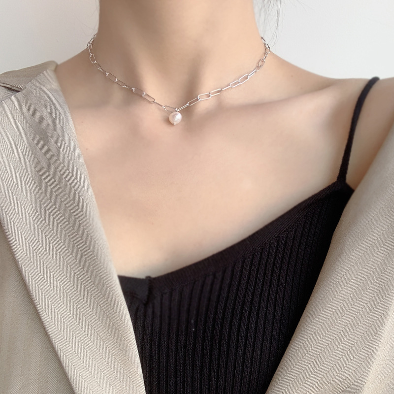 Dây chuyền vòng cổ hợp kim titan không han gỉ mix hạt châu basic đơn giản mà cá tính