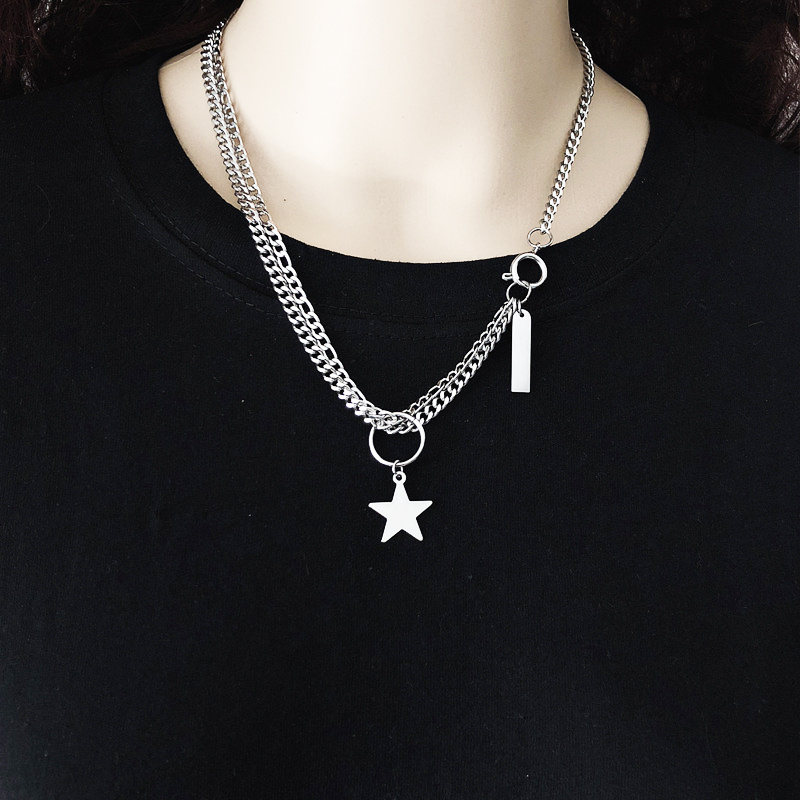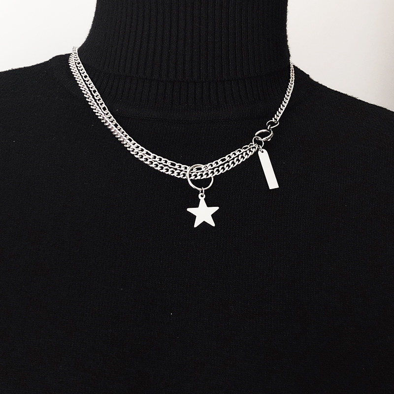 Với lối thiết kế thanh mảnh, nhiều loại dây, dây chuyền kim loại titan thép này từng mộ thời “làm mưa làm gió” trên các con đường. Hiện nay, kiểu dây chuyền này vẫn luôn có một sức hút đặc biệt với các bạn trẻ. Dây chuyền vòng cổ mix thanh và ngôi sao mang lại vẻ thanh lịch, tinh tế, lại vừa hiện đại, phá cách với. Mặt dây với nhiều mẫu mã đối lập hoặc tương đồng tạo ra sự mới mẻ, không “đụng hàng”.