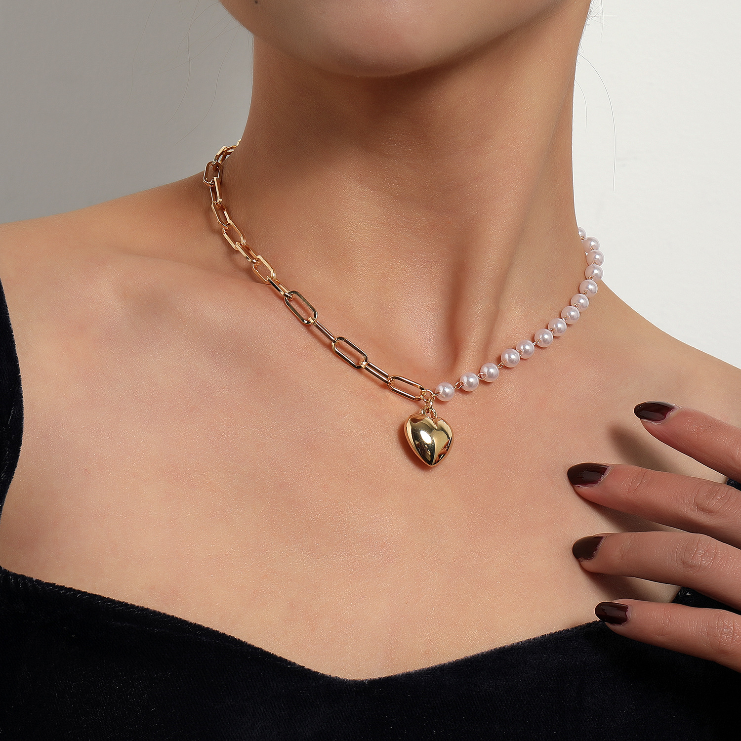 Dây chuyền vòng cổ trái tim 3D mix ngọc trai sang chảnh hot girl đa phong cách unisex cá tính, phụ kiện thời trang đa năng sành điệu
