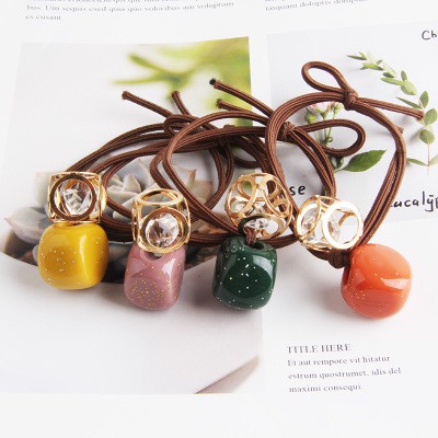 Dây cột tóc đơn giản dây nâu đính họa tiêt vuông. Dây cột tóc kiểu Hàn Quốc dễ thương.