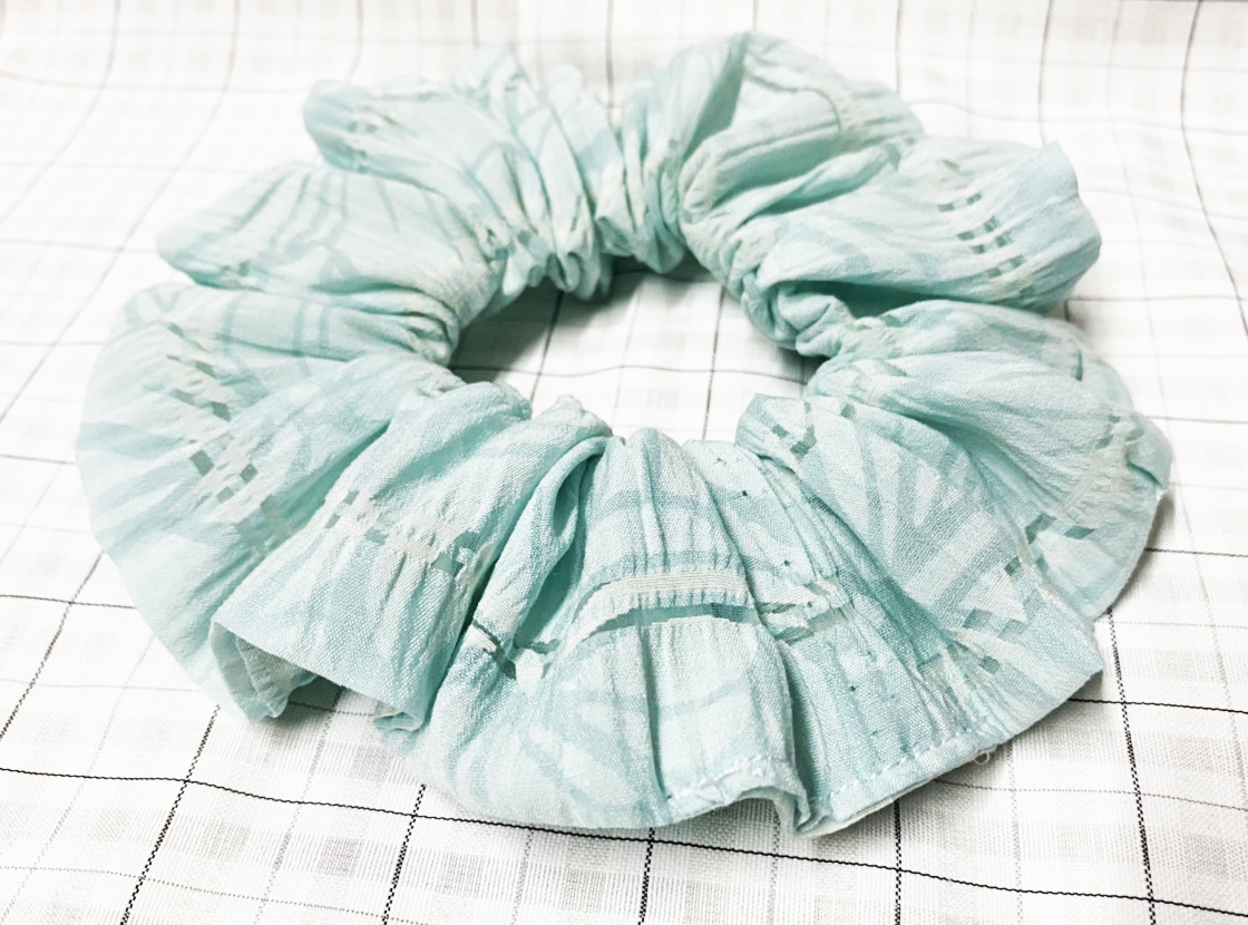 Dây cột tóc scrunchies xanh hoa văn size trung