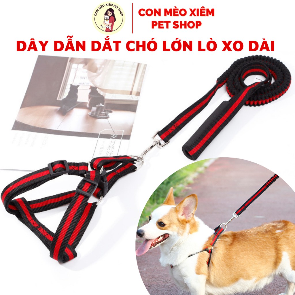 Dây dẫn dắt thú cưng chó mèo lớn bản 1.5cm 7kg-15kg- Đồ dùng thú cưng Con Mèo Xiêm Bản dây vải lò xo có thể kéo dài ra