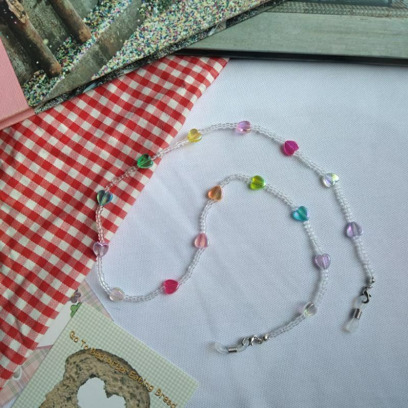 Dây đeo giữ kính khẩu trang hạt cườm trong mix hạt trái tim nhiều màu