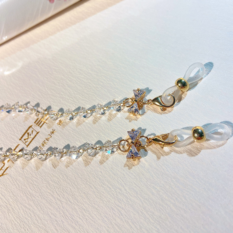 Dây đeo gọng kính mix nơ đá chuỗi hạt cườm trong suốt lấp lánh ánh sáng dây giữ khẩu trang tai nghe airpod glasses chain mask hold