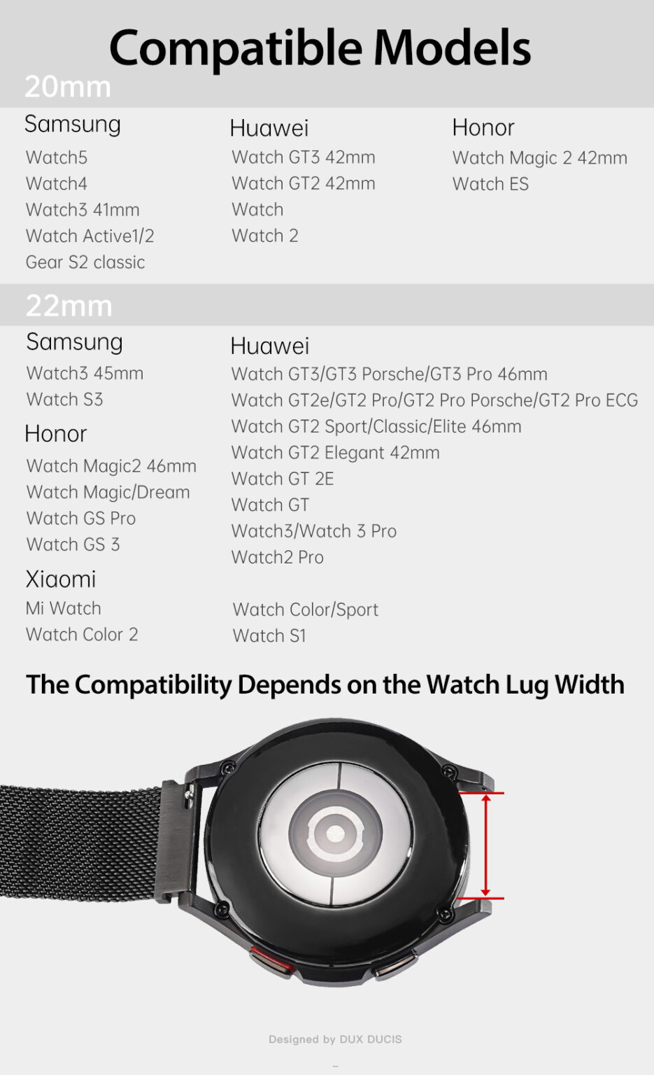 Được thiết kế cho Galaxy Watch, Huawei Watch, Garmin, Amazfit, Coros và các loại đồng hồ khác