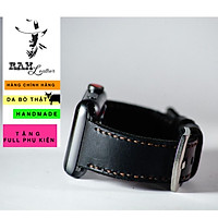 Dây đồng hồ da bò handmade - RAM black + b2 (tặng khóa, chốt, cây thay dây)