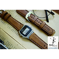 DÂY ĐỒNG HỒ DA BÊ THẬT MÀU NÂU SỮA - CASIO A159 -CHÍNH HÃNG RAM LEATHER