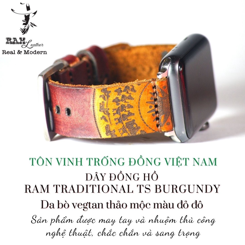 Dây đồng hồ RAM Leather vintage da bò Italia Vegtan màu burgundy Trống Đồng Việt Nam