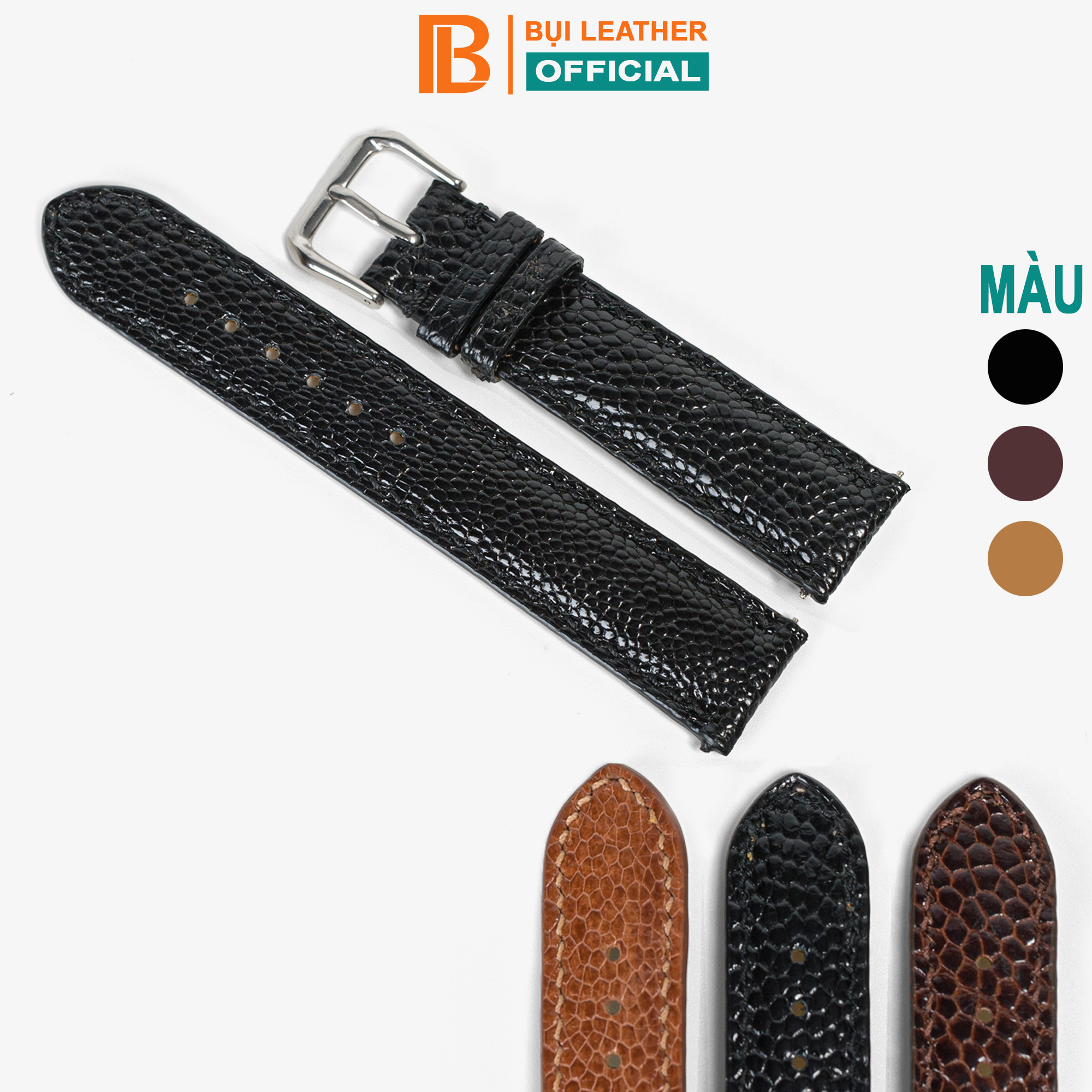Dây đồng hồ nam da đà điểu D104-da thật-khâu tay thủ công cao cấp, dây da đồng hồ size 18mm 20mm 22mm 24mm phù hợp với cả dw rolex hublot orient seiko casio,tặng tool tháo và chốt khóa,thương hiệu Bụi leather,bảo hành 12 tháng