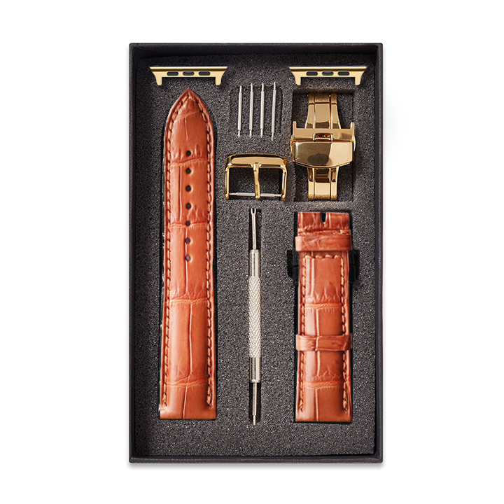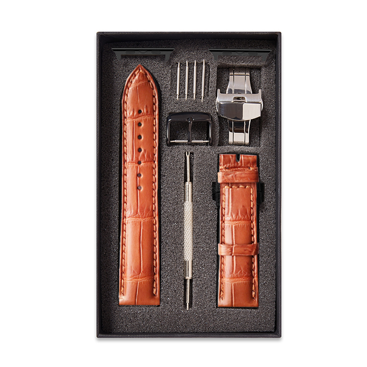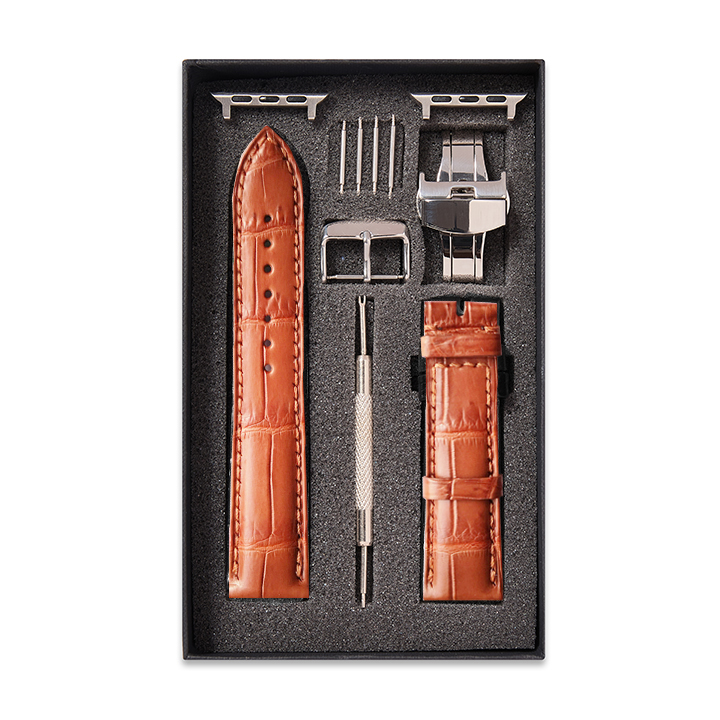 Dây da đã lắp sẵn bộ chốt (Adapter) và khóa (Buckle) bằng thép không gỉ 316L được sản xuất riêng cho Apple Watch.